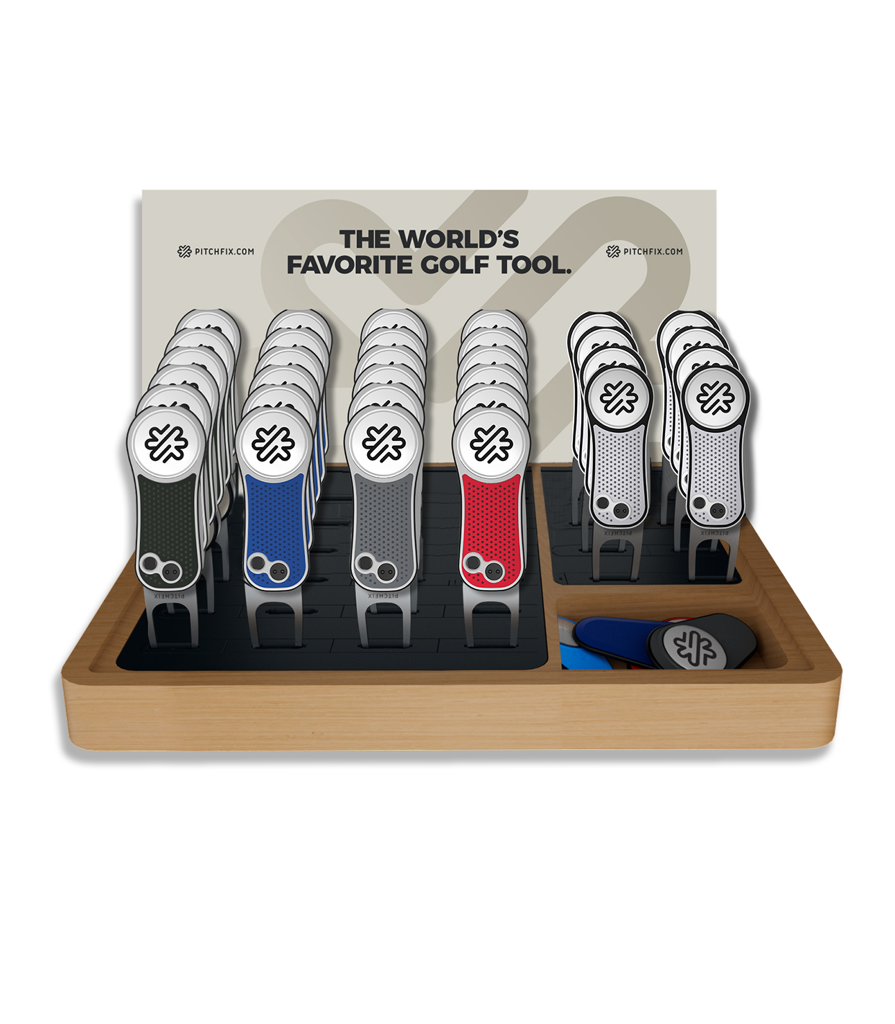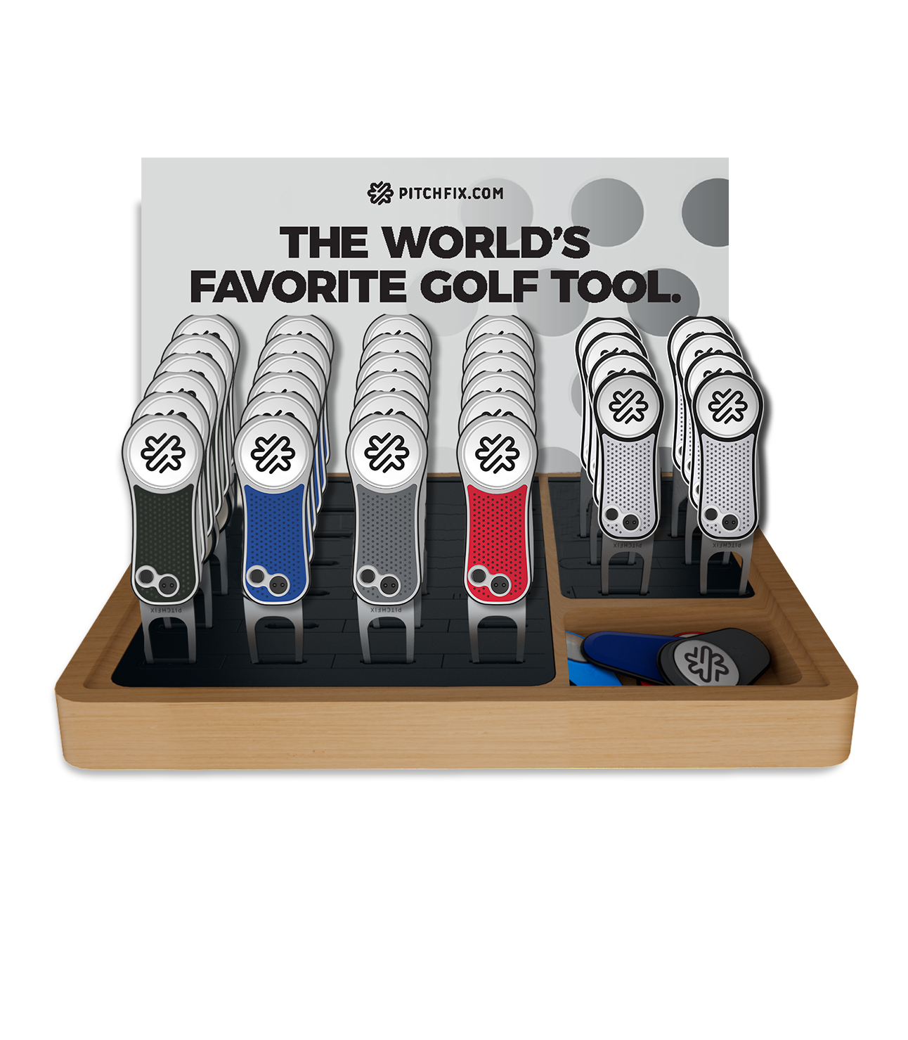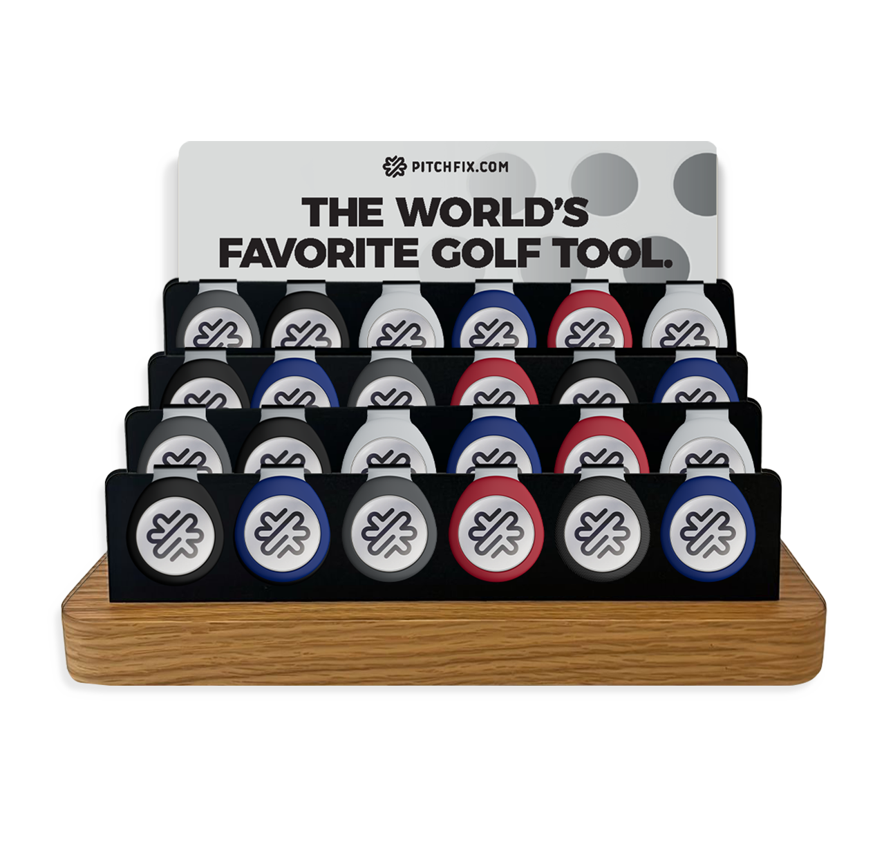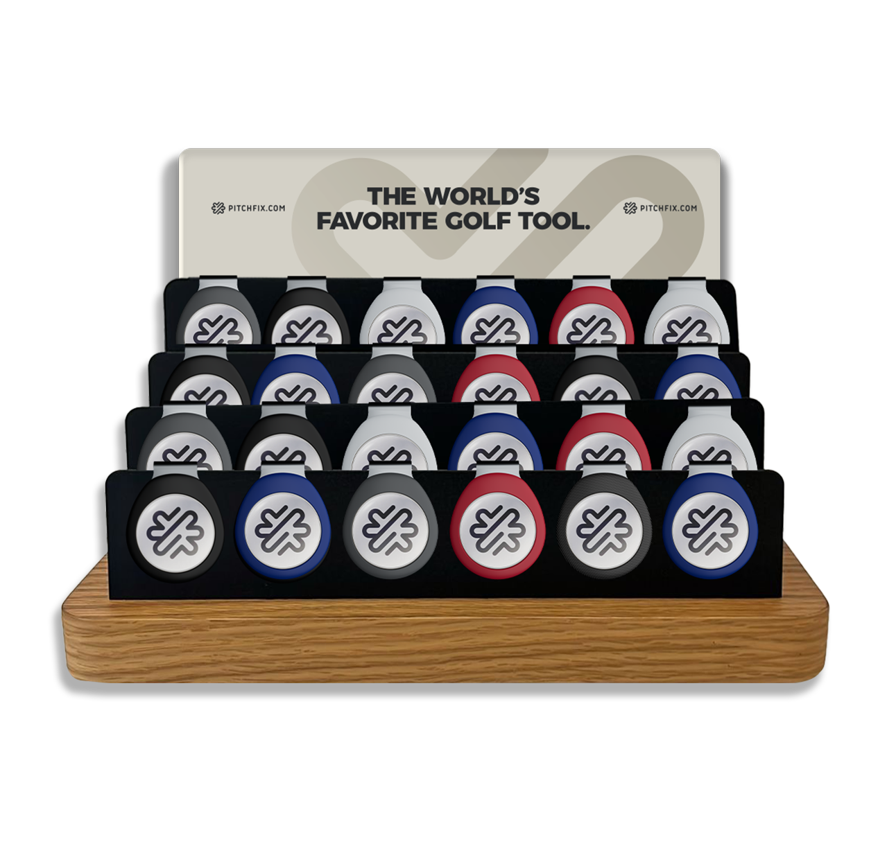 Our retail partners have access to our custom designed POS displays, which can be customized to display any combination of Pitchfix tools and ballmarkers and also feature a customizable backdrop to promote any local sales message.